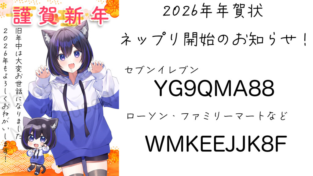 謹賀新年 今年もよろしくお願いします! 声優 2026.01.012026.01.13 新年あけましておめでとうございます!🎍2026年も配信に声優活動にたくさん頑張っていきます✨皆さんの応援をお待ちしております!今年もどうぞよろしくお願いいたします。 そして!上記の年賀状をネップリしております✨26年1月30日まで印刷できますので、ぜひどうぞ!! 訂正:ローソンなどでのユーザ番号変更しました。 新ID:EGW6RKJTTJ 上記の入力で 1月30日まで印刷できます よろしくお願いいたします!!
